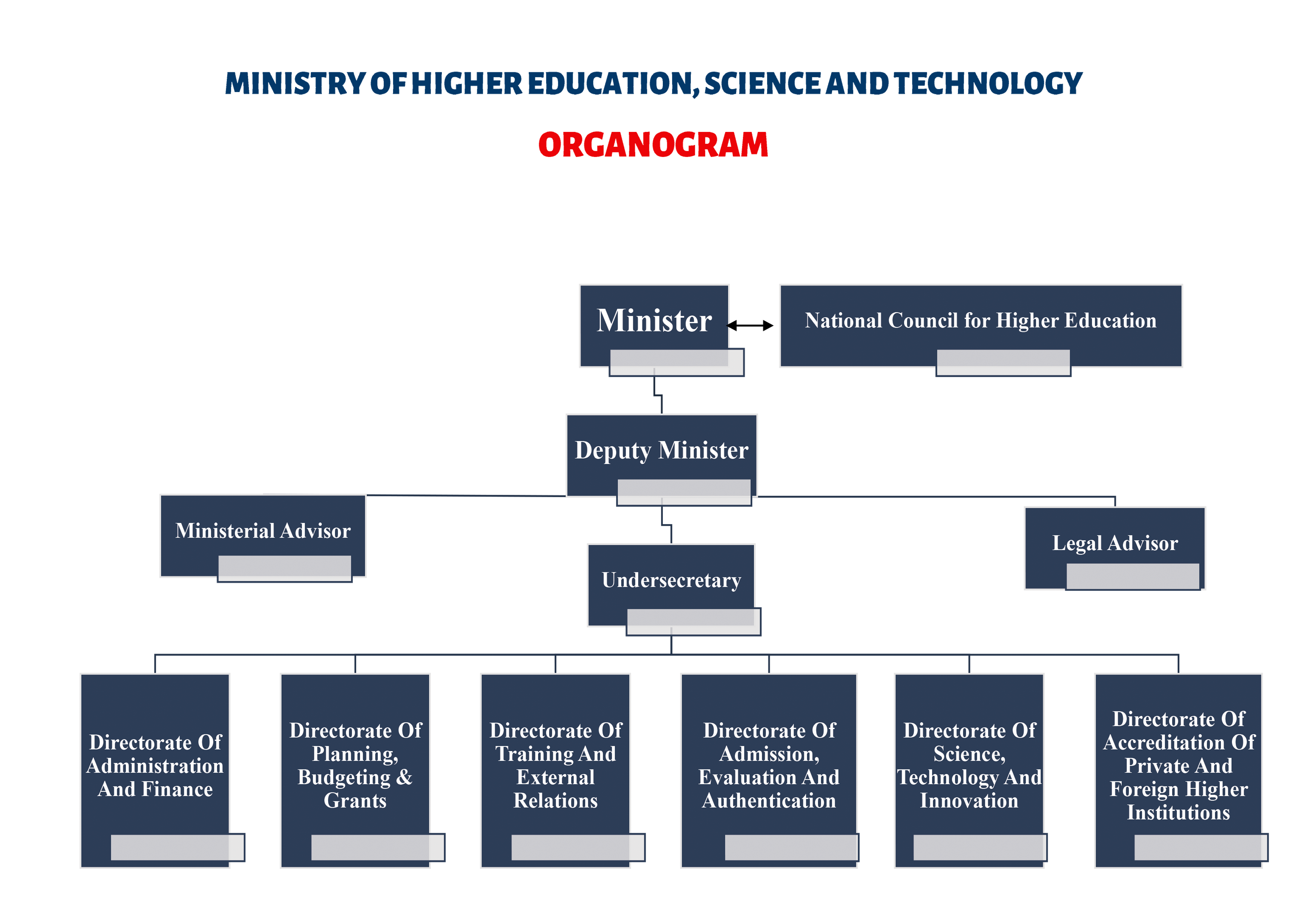 There are six (9) directorates plus National Council for Higher Education in the Ministry of Education, Science and Technology, Higher Education Sector. These include