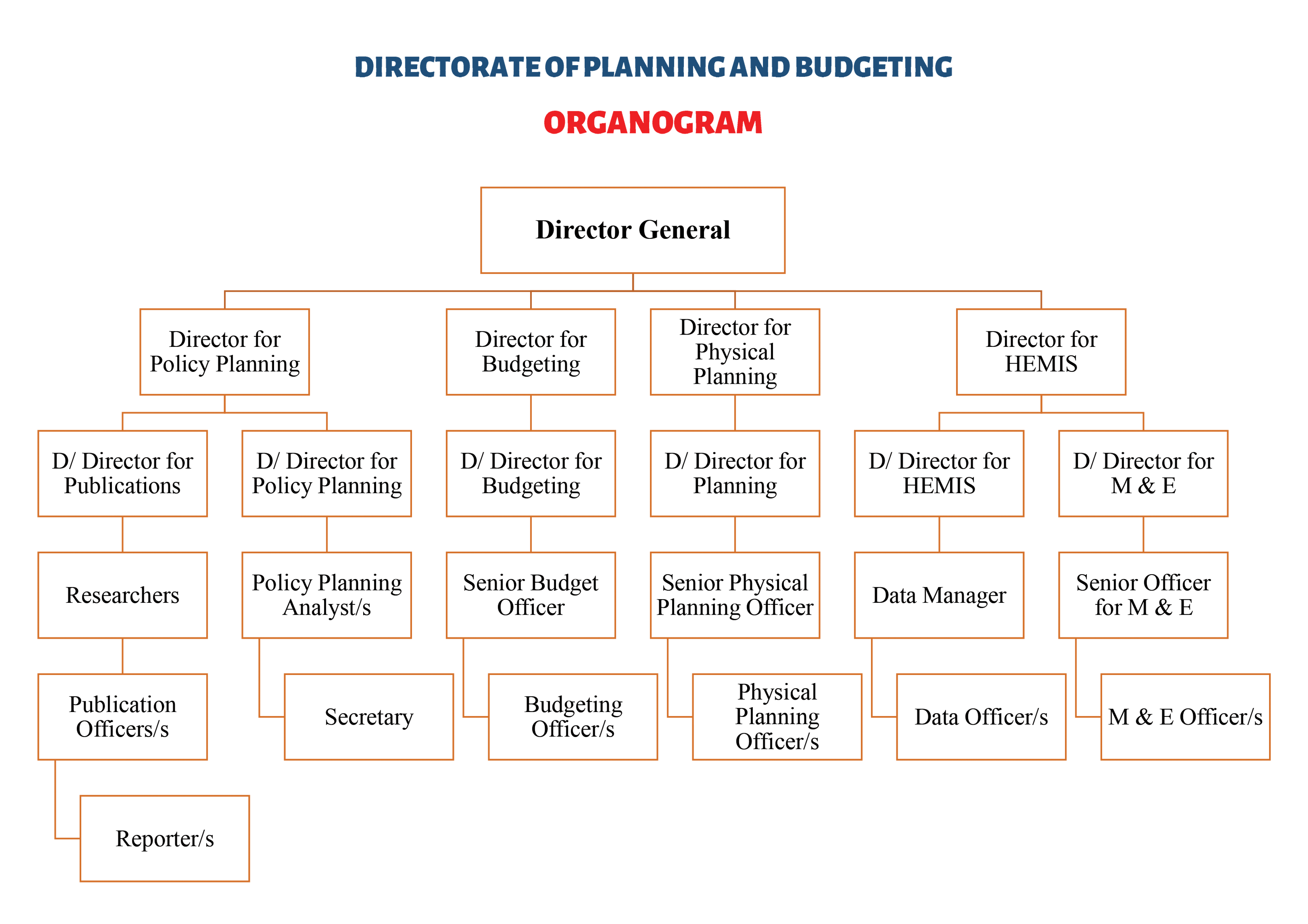 The directorate is charged with the responsibility of coordination and promotion of efficient and effective implementation of policy, budget(s) of the ministry of education (Higher Education Sector). It consists of the following department: